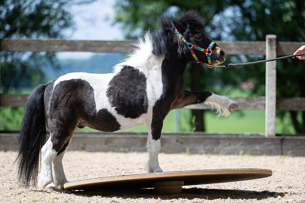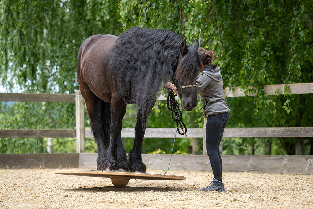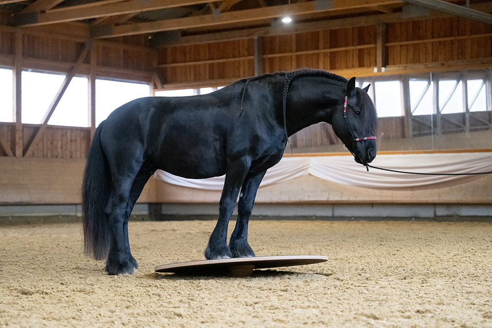 Nämlich, als eine Bekannte zu mir kam und für einen Zirzensik-Kurs ganz schnell ein Pferdepodest benötigte. Sabine erzählte von den besonderen Anforderungen des Trainings. Sofort legte ich los, das passende Modell dafür zu entwickeln. Drei Wochen später war das Podest fertig und Sabine konnte mit ihrem Pferd damit üben.